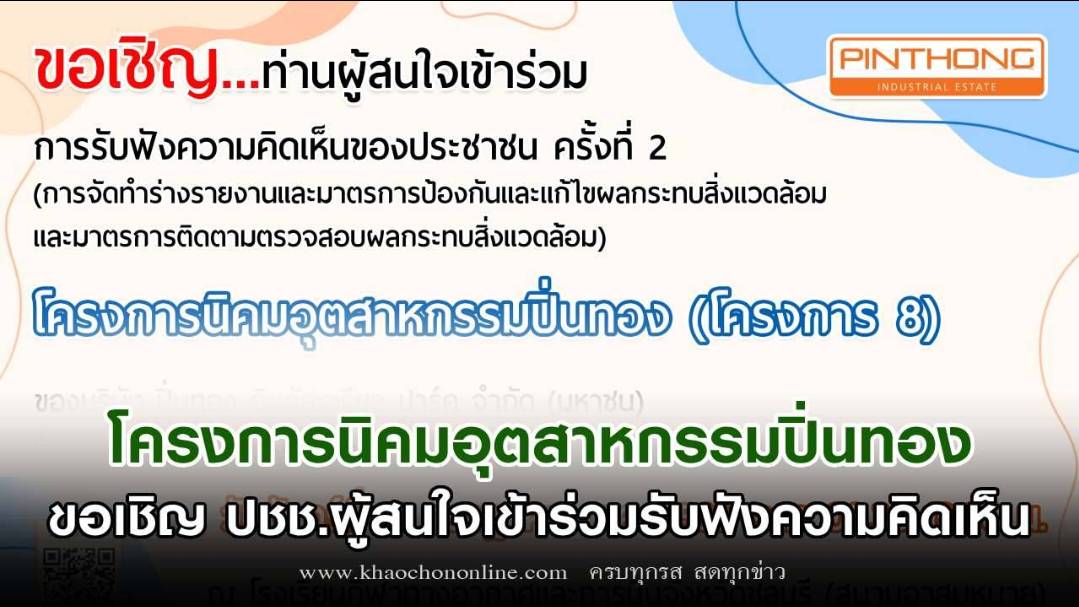 โครงการนิคมอุตสาหกรรมปิ่นทองขอเชิญ ปชช.ผู้สนใจเข้าร่วมรับฟังความคิดเห็น การรับฟังความคิดเห็นของประชาชน ครั้งที่ 2