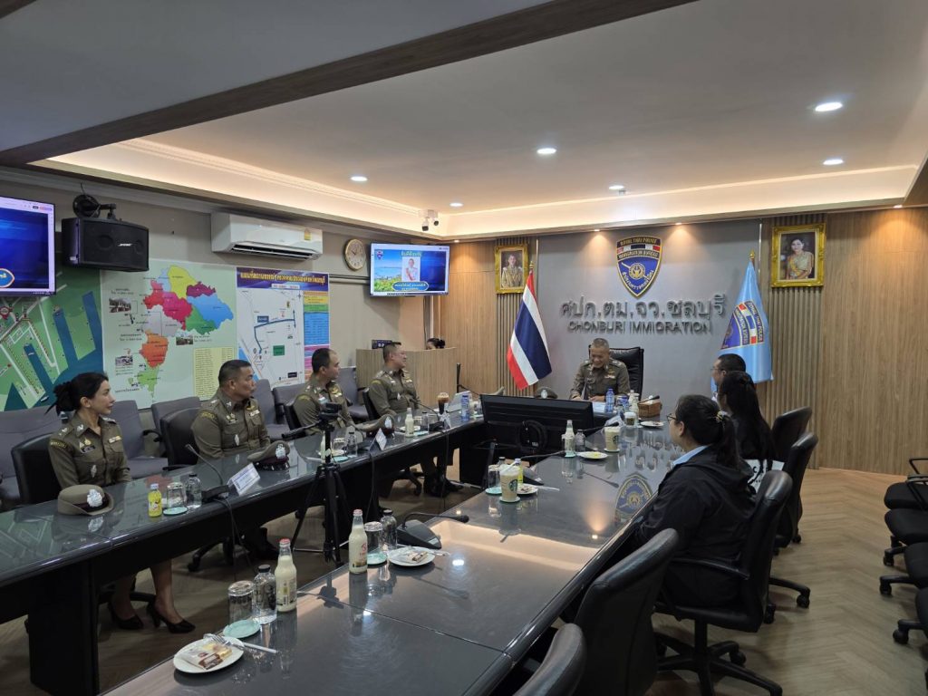 การตรวจเยี่ยมครั้งนี้ ได้รับการต้อนรับอย่างเป็นทางการจากพ.ต.อ.นภัสพงษ์ โฆษิตสุริยมณี ผู้กำกับการตรวจคนเข้าเมืองจังหวัดชลบุรี พ.ต.ท.กวิณวัชร์ อารยะสุริวงศ์ รองผู้กำกับการ ตม.จว.ชลบุรี พร้อมข้าราชการตำรวจด่านตรวจคนเข้าเมืองพัทยาทุกนาย