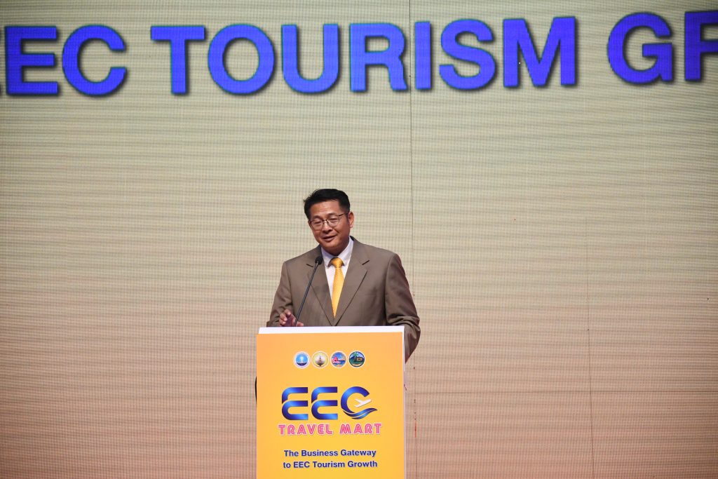 นายอติเรก อุ่นโอสถ รองผู้ว่าราชการจังหวัดชลบุรี กล่าวว่า “อุตสาหกรรมการท่องเที่ยวถือเป็นเครื่องจักรสำคัญที่ช่วยขับเคลื่อนเศรษฐกิจของประเทศ และกลุ่มจังหวัตภาคตะวันออก 1 หรือ EEC.มีความพร้อมรอบด้าน ทั้งแหล่งท่องเที่ยวคุณภาพ ความหลากหลายทางวัฒนธรรม และความเป็นมืออาชีพของผู้การจัดงาน EEC Travel Mart จึงเป็นเวทีสำคัญที่จะช่วยเสริมสร้างความมั่นใจ ตอกย้ำภาพลักษณ์ และยกระดับพื้นที่ EEC ให้ก้าวสู่การเป็นจุดหมายปลายทางการท่องเที่ยวระดับนานาชาติ”