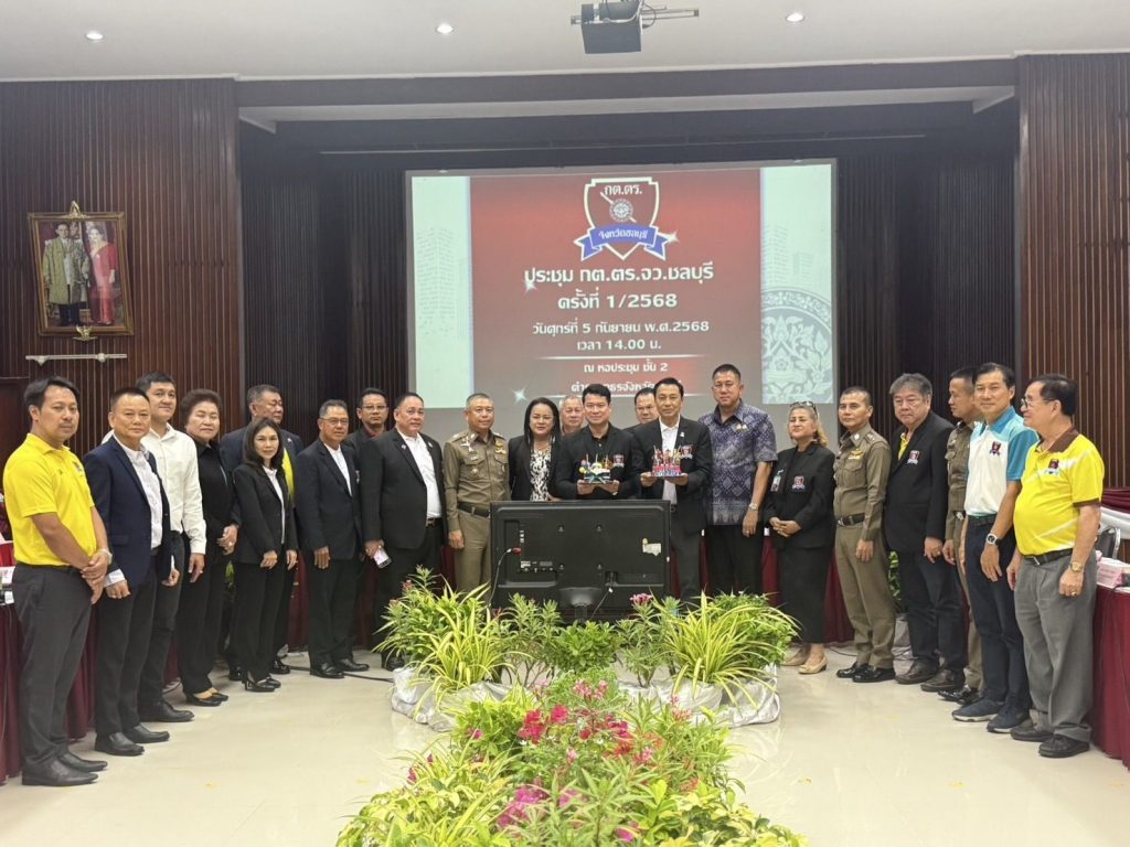 โดยมี นายธวัชชัย ศรีทอง ผู้ว่าราชการจังหวัดชลบุรี เป็นประธานการประชุม ในโอกาสนี้ทางคณะกรรมการฯ ได้ร่วมแสดงความยินดีมอบกระเช้าให้แก่ นายธวัชชัย ศรีทอง ผวจ.ชลบุรี เกษียณอายุราชการ 30 กย.68 และแสดงความยินดีกับ พล.ต.ต.ธวัชเกียรติ จินดาควรสนอง ได้ขึ้นรับตำแหน่งรอง.ผบช.น. พ.ต.อ.ชาตรี สุขศิริ ขึ้นรับตำแหน่ง ผบก.อ.ภ.2
