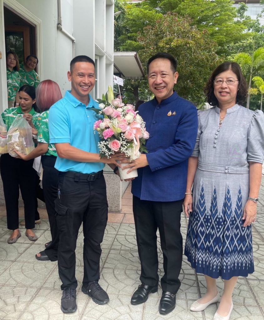 โดยนายสุชาติ ชมกลิ่น รองนายกฯรัฐมนตรีและรัฐมนตรีว่าการกระทรวงทรัพยากร สิ่งแวดล้อม ได้มอบหมายให้นายสุรพงศ์ นำชัยรุจิพงศ์ ผู้ช่วยรัฐมนตรีว่าการกระทรวงอุตสาหกรรม นำกระเช้าดอกไม้มามอบให้ผู้ว่าฯนริศ ฯ เพื่อเป็นกำลังใจในการปฏิบัติราชการ จากนั้น นายวิทยา คุณปลื้ม นายกอบจ. ชลบุรี ได้นำคณะผู้บริหารอบจ.ชลบุรี และชมรมแม่บ้านอบจ. ชลบุรี มอบดอกไม้เพื่อเป็นกำลังใจในการทำงานร่วมกัน พลตำรวจตรีนันทวุฒิ สุวรรณละออง รอง.ผบช.ภ.2 พร้อมด้วย พ.ต.อ.วสุุรัชย์ ชัยธีรพัฒน์ รอง.ผบก.ชลบุรี พ.ต.อ.เอนก สระทองอยู่ ผกก.พัทยา พ.ต.อ.คมสรร คำตุ่นแก้ว ผกก.สัตหีบ พ.ต.อ.พัฒนา รอบรู้ ผกก.นาจอมเทียน นายกเทศมนตรี นายกอบต. ในพื้นที่จังหวัดชลบุรี สี่อมวลชนจังหวัดชลบุรี และสี่อมวลชนจังหวัดสมุทรสาคร