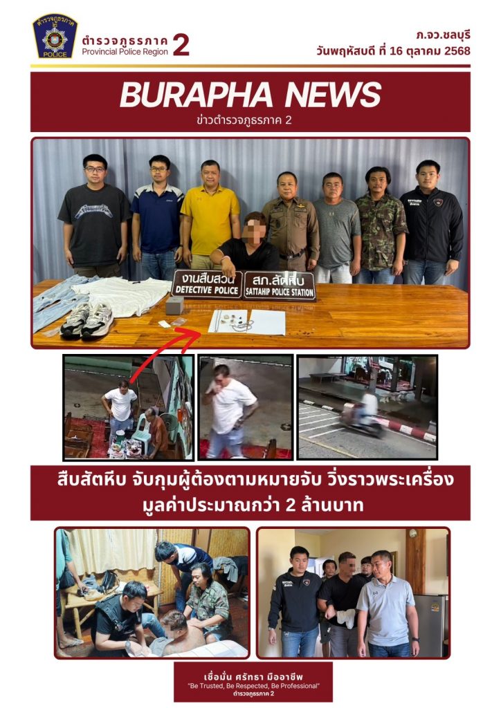 ผกก.สัตหีบ ไม่ปล่อยอาชญากรลอยนวล สั่งชุดสืบสวนตามจับโจรวิ่งราวพระเครื่อง มูลค่าประมาณ 2 ล้านบาท