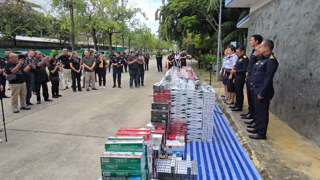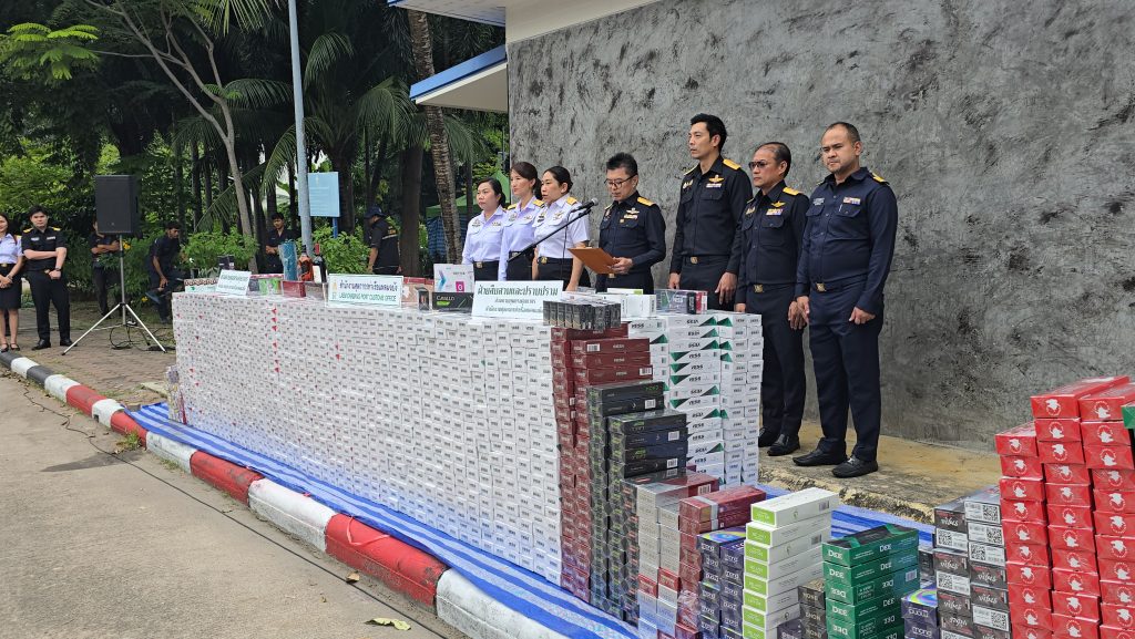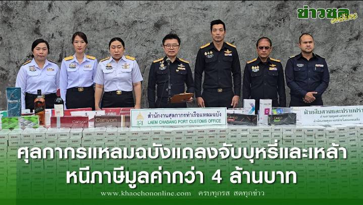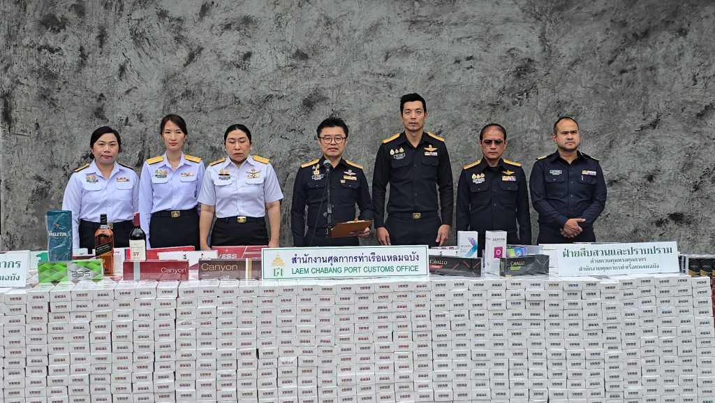 ศุลกากรแหลมฉบังแถลงข่าวการจับกุมบุหรี่ ต่างประเทศ ไม่เสียภาษีและไม่ผ่านพิธีการทางศุลกากร ทางไปรษณีย์ภายในประเทศ มูลค่าของกลางรวมกว่า 4.26 ล้านบาท