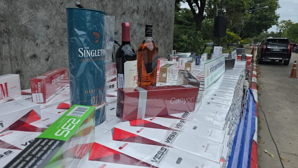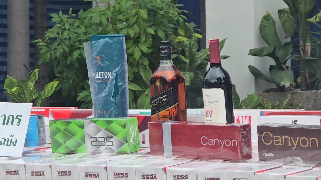 เมื่อเวลา 13.00 น.วันนี้ ( 21 พฤศจิกายน 2568) ณ คลังของกลางและของตกค้าง สำนักงานศุลกากรท่าเรือแหลมฉบัง จ.ชลบุรี. นายภาณุ ลิ้มวงศ์ยุติ ผู้อำนวยการสำนักงานศุลกากรท่าเรือแหลมฉบัง เป็นประธานในการแถลงข่าวการจับกุมบุหรี่ที่มีเมืองกำเนิดจากต่างประเทศ ไม่เสียภาษีและไม่ผ่านพิธีการทางศุลกากร ทางไปรษณีย์ภายในประเทศ ที่สำนักงานศุลกากรท่าเรือแหลมฉบัง ตรวจยึดจับกุมพัสดุไปรษณีย์ในประเทศ 813 หีบห่อลักลอบส่ง “บุหรี่ต่างประเทศ บุหรี่ไทย และสุราต่างประเทศ” มูลค่าของกลางรวมกว่า 4.26 ล้านบาท