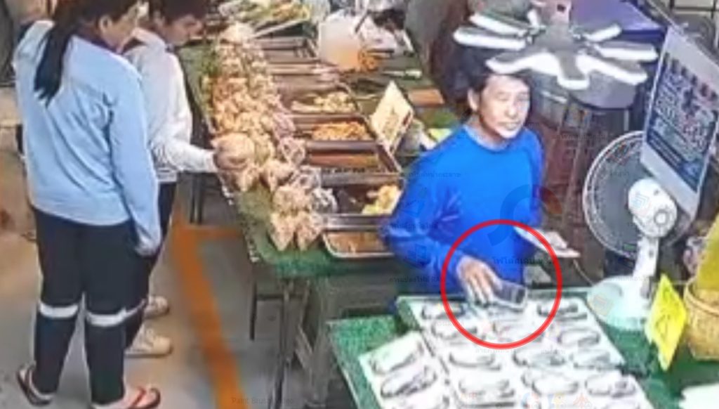 ผู้สื่อข่าวจึงเดินทางไปตรวจสอบกล้องวงจรปิดภายในตลาดดังกล่าวสามารถจับภาพเหตุการณ์ได้ โดยภาพวงจรปิดจะเห็นผู้ก่อเหตุเป็นผู้ชาย อายุประมาณ 45-50 ปี ตัดผมรองทรง ผิวคล้ำ ใส่เสื้อแขนยาวสีน้ำเงิน กางเกงขายาวสีดำ รองเท้าผ้าใบสีขาว เห็นหน้าตาอย่างชัดเจน เดินเข้ามาในตลาดก่อนเดินมาถึงร้านขายปลาทูนึ่ง ระหว่างนั้นเห็นผู้ก่อเหตุเหลือบมองไปที่โทรศัพท์มือถือที่วางไว้ตรงแผงขายปลาทูหน้าร้าน เพื่อให้ลูกค้าสแกนโอนเงินผ่านแอป แล้วทำทีเดินผ่านหน้าร้านไป ซึ่งขณะนั้นแม่ค้าลุกออกไปเข้าห้องน้ำ ไม่ได้อยู่หน้าร้าน แต่ให้พ่อค้าขายอาหารที่อยู่ติดกันคอยดูแลและขายของให้ก่อน ซึ่งผู้ก่อเหตุจึงได้เดินกลับมาที่ร้านขายปลาทู ก่อนจะหยิบเอาปลาทูไปสอบถามราคากับพ่อค้าร้านข้างเคียง แล้วหยิบเอาโทรศัพท์มือถือใส่กระเป๋ากางเกง ก่อนเดินไปจ่ายเงินค่าปลาทูกับพ่อค้าร้านขายอาหารแล้วเดินออกจากตลาดไปอย่างลอยนวล