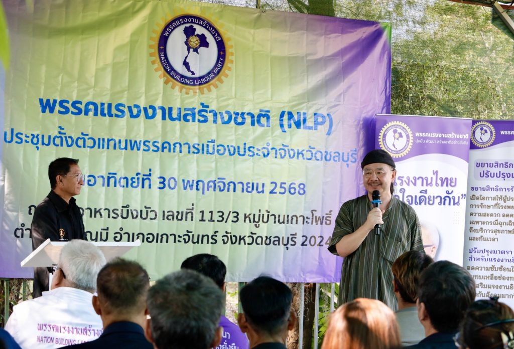 พรรคแรงงานสร้างชาติ ประชุมตั้งตัวแทนพรรคการเมืองจ.ชลบุรี ขับเคลื่อนนโยบายดูแลสวัสดิการผู้ใช้แรงงาน หน.พรรค ตั้งเป้าขอคะแนนชาวชลบุรี 1 แสนคะแนน