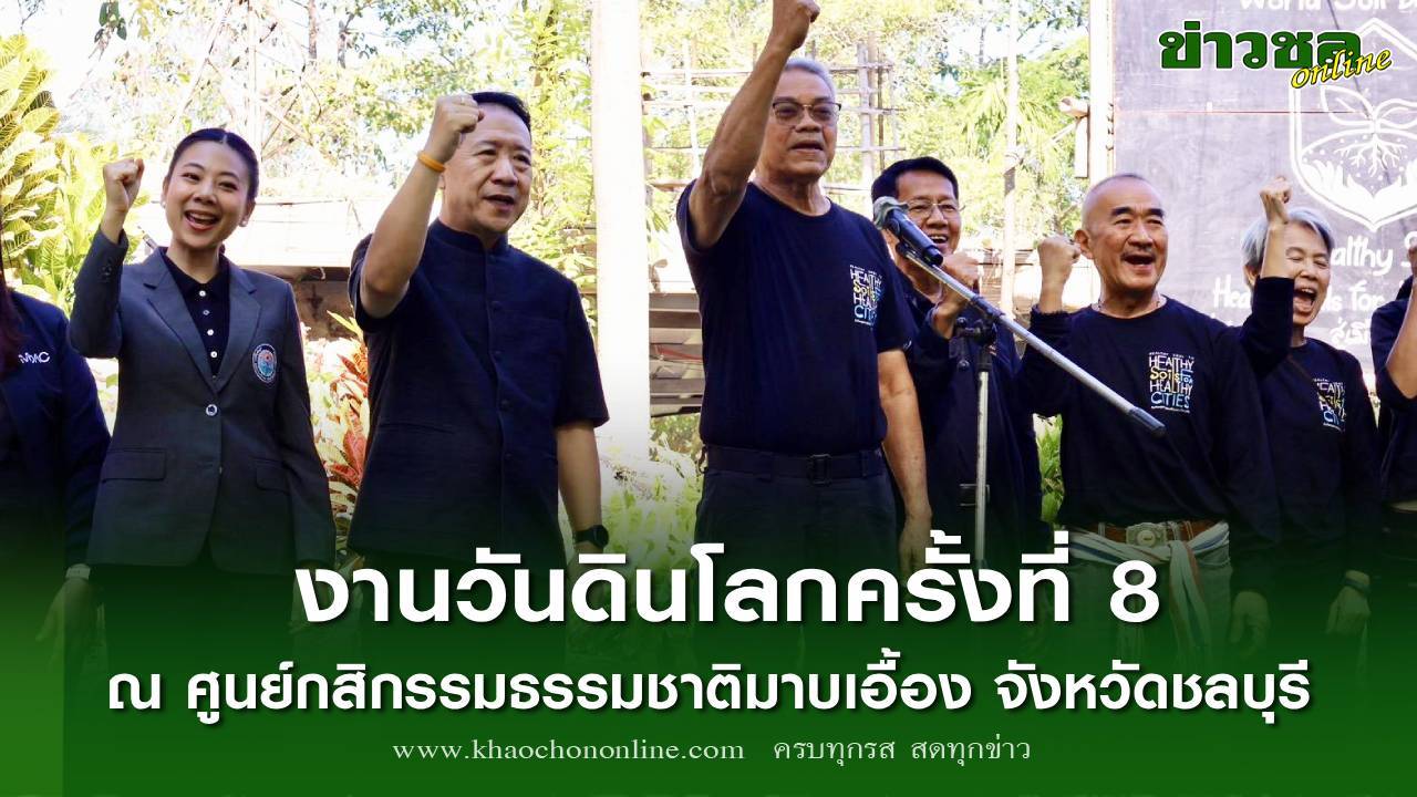 วันนี้(6 ธันวาคม 2568) เวลา 09:30 น. จังหวัดชลบุรีร่วมจัดงานวันดินโลกครั้งที่ 8 ภายใต้ธีม “ดินที่สมบูรณ์ สู่เมืองที่สมดุล เกื้อกูลชีวิต” ณ ศูนย์กสิกรรมธรรมชาติมาบเอื้อง อำเภอบ้านบึง โดยมี ดร.วิวัฒน์ ศัลยกำธร (อาจารย์ยักษ์) นายกสมาคมดินโลก และประธานมูลนิธิกสิกรรมธรรมชาติ เป็นประธานในพิธีเปิด พร้อมด้วยนายนริศ นิรามัยวงศ์ ผู้ว่าราชการจังหวัดชลบุรี, ผู้แทนจากองค์การบริหารส่วนจังหวัดชลบุรี, หน่วยงานที่เกี่ยวข้อง และประชาชนชาวจังหวัดชลบุรีมาร่วมงานกันอย่างคับคั่ง