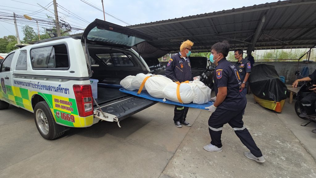 หลังจากนั้นเจ้าหน้าที่ตำรวจได้เข้าตรวจสอบ พร้อมสอบถามเหตุการณ์จากผู้ที่เกี่ยวข้อง ก่อนมอบหมายให้เจ้าหน้าที่กู้ภัยสว่างประทีปศรีราชา นำร่างผู้เสียชีวิตส่งชันสูตรหาสาเหตุการเสียชีวิตอีกครั้งหนึ่ง ก่อนจะพยายามติดต่อแจ้งหญาติให้มารับร่างผู้เสียไปบำเพ็ญกุศลตามประเพณีต่อไป เบื้องต้นสันนิษฐานว่าน่าจะเกิดจากการดื่มสุรา หรือเกิดการเสียชีวิตจากโรคประจำตัว ซึ่งจะต้องตรวจสอบให้ชัดเจนอีกครั้งหนึ่ง