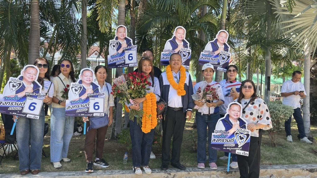 วันที่ 27 ธ.ค.68 เวลา 07.00 น. ผู้สื่อข่าวรายงานบรรยากาศการรับสมัครเลือกตั้งสมาชิกสภาผู้แทนราษฎร แบบแบ่งเขตเลือกตั้ง จ.ชลบุรี ที่ศาลาประชาคมเทศบาลนครบ้านสวน อ.เมือง จ.ชลบุรี เป็นสถานที่รับสมัครรับเลือกตั้งสมาชิกสภาผู้แทนราษฎรแบบแบ่งเขตเลือกตั้ง เขตเลือกตั้งที่ 1-10 มีความคึกคักตั้งแต่เช้า เมื่อบรรดาผู้สมัครส.ส.แต่ละพรรคการเมือง ได้มายื่นเอกสารการรับสมัครก่อนเวลาถึง 8.30 น. ด้านล่างรอบอาคารมีบรรดากองเชียร์พรรคการเมืองต่างๆ เดินทางมาให้กำลังผู้สมัครเป็นจำนวนมาก โดยนายสนธยา คุณปลื้ม ได้มาให้กำลังใจผู้สมัครส.ส. พรรคภูมิใจไทยด้วย