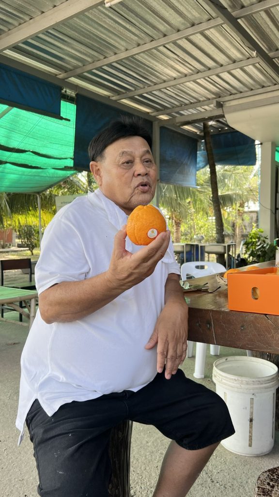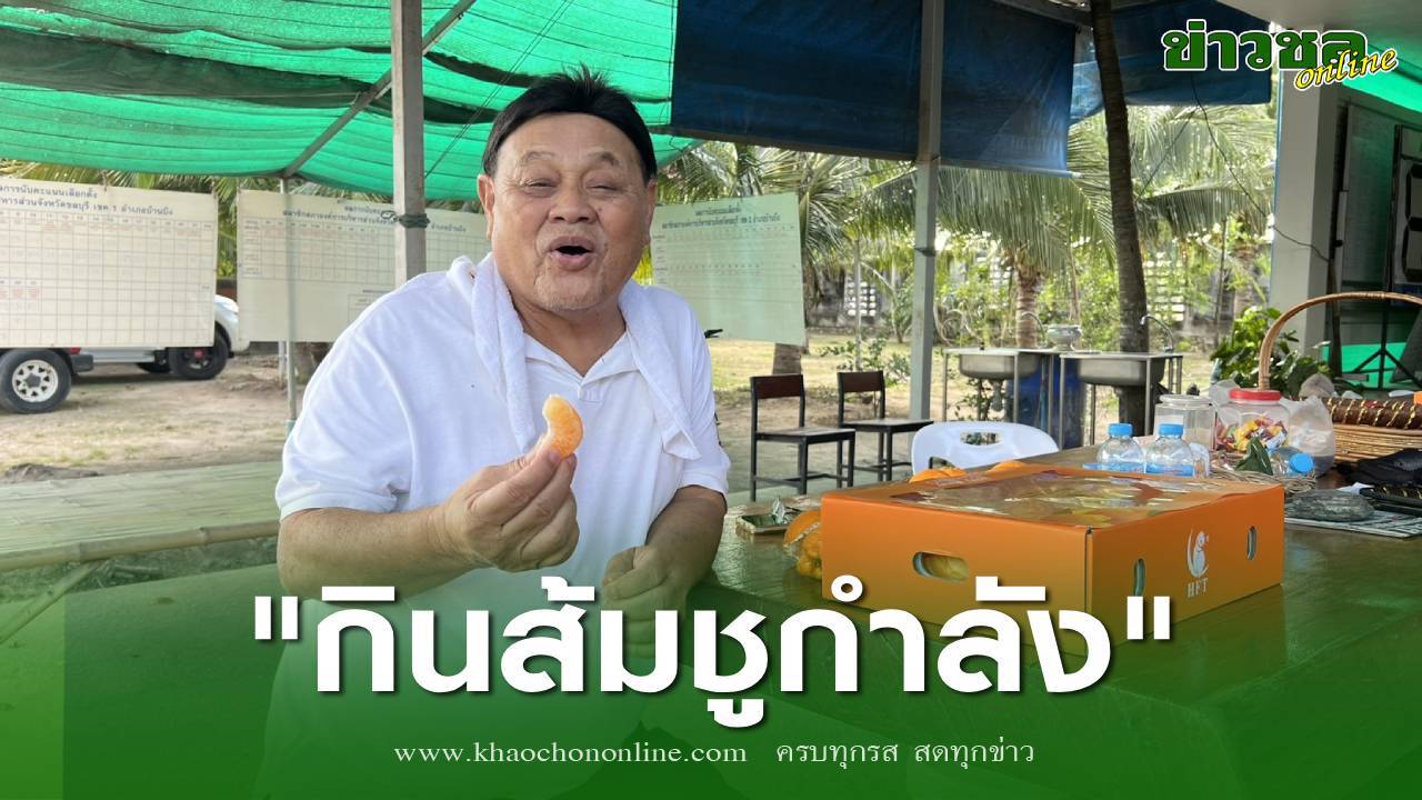 ผู้สมัครส.ส.ชลบุรี เขต.4 พรรคภูมิใจไทย กินส้มชูกำลัง หลังเดินลงพื้นที่หาเสียงประชาชน