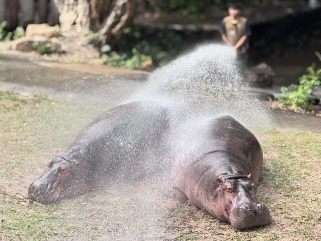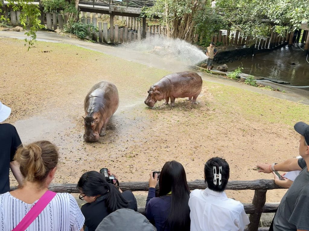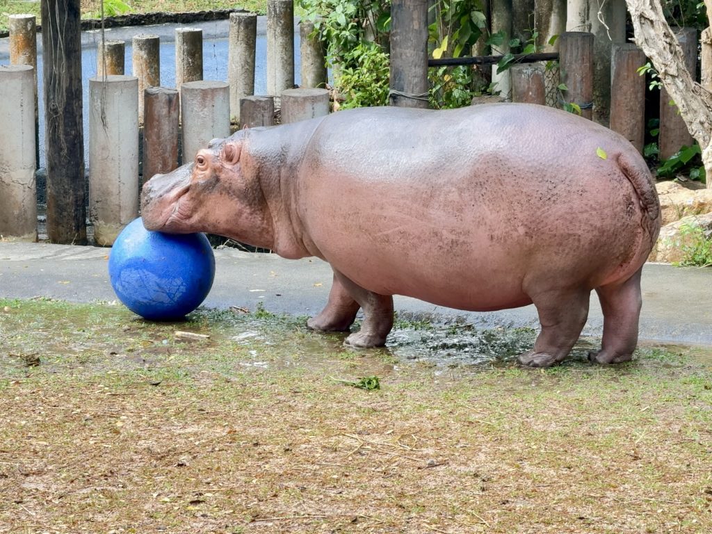 สวนสัตว์เปิดเขาเขียว จังหวัดชลบุรี จัดกิจกรรมส่งเสริมพฤติกรรมสัตว์ (Animal Enrichment) สำหรับฮิปโปโปเตมัสขวัญใจมหาชน “ขาหมู” ฮิปโปโปเตมัสสาวสวยวัย 8 ขวบ ซุปตาร์ประจำสวนสัตว์ ภายใต้กิจกรรม “อาบน้ำ–เล่นบอล” ซึ่งจัดขึ้นเป็นประจำทุกวันพุธ โดยความพิเศษคือเป็นวันล้างทำความสะอาดบ่อพักและส่วนแสดงครั้งใหญ่ประจำสัปดาห์ กิจกรรมนี้ไม่เพียงช่วยส่งเสริมสุขภาพกายและสุขภาพจิตของสัตว์เท่านั้น แต่ยังเพิ่มสีสันและความตื่นเต้นให้กับนักท่องเที่ยวที่มาร่วมลุ้นกันว่า วันนี้ขาหมูจะอารมณ์ดี เล่นบอลโชว์หรือไม่