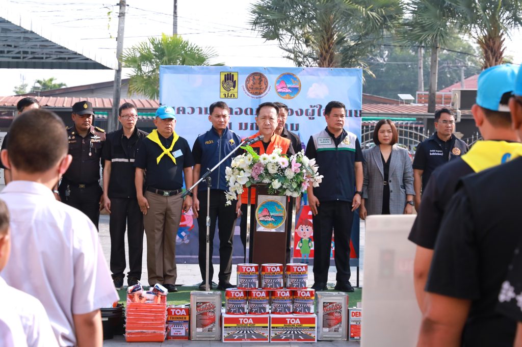 11 กุมภาพันธ์ 2569 เวลา 09.00 น. นายนริศ นิรามัยวงศ์ ผู้ว่าราชการจังหวัดชลบุรี เป็นประธานในพิธีเปิดกิจกรรมรณรงค์ “วันความปลอดภัยของผู้ใช้ถนน” ณ เทศบาลเมืองดอนหัวฬ่อ อำเภอเมืองชลบุรี เพื่อมุ่งเน้นการสร้างจิตสำนึก ลดความสูญเสียบนท้องถนน และสร้างวัฒนธรรมความปลอดภัยอย่างยั่งยืน โดยมีนายเดชา เรืองอ่อน หัวหน้า ปภ.จังหวัดชลบุรี, นายเจษ เสียงลือชา ท้องถิ่นจังหวัดชลบุรี และ นายไมตรี ประเสริฐ นายกเทศมนตรีเมืองดอนหัวฬ่อ ข้าราชการ จิตอาสา เจ้าหน้าที่เทศบาล และนักเรียนเข้าร่วมกิจกรรม